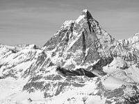 De Monte Cervino, de italiaanse naam voor de Matterhorn, gezien vanuit het oosten. Deze markante berg spreekt tot ieders verbeelding en trekt toeristen vanuit de hele wereld naar de Alpen.