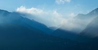 Ik heb deze foto gemaakt op een rustige, iets wat mistige ochtend in Italië bij het Comomeer. Je ziet de hoeveelheid lagen van alle bergen. Het is een hele diepe foto met een rustige uitstraling. Her en der zie je op de bergen nog een dorpje liggen.
