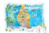 Montserrat Antillen Geïllustreerde reiskaart met wegen en hoogtepunten van Markus Bleichner