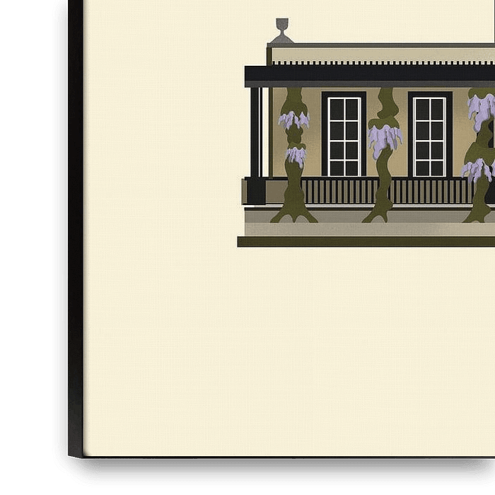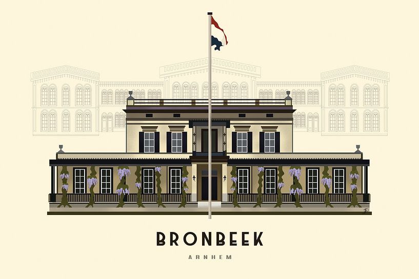 Een warm en handgemaakt kunstwerk van het monument Bronbeek in Arnhem. Met een stijlvolle retro uitstraling en art-deco invloeden is dit werk een tijdloze wanddecoratie voor liefhebbers van architectuur, erfgoed en design met karakter.