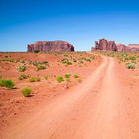 Monument Valley is een vlakte op het Colorado Plateau aan de zuidgrens van de Amerikaanse staat Utah met Arizona. Het ligt in het Navajo Nation Reservaat. Het landschap heeft als achtergrond gediend voor vele films. Hier is een mooi uitzicht op Valley Drive.