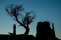 Silhouet van het landschap van Monument Valley bij het latste licht in de blauwe lucht
