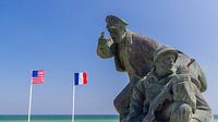 Een 16:9 foto van een van de meer dramatische WOII monumenten op Utah Beach. Het ligt op een hoog punt boven de duinen en het strand en is een eerbetoon aan de bijdrage van de Amerikaanse marine in de D -Day landingen in Normandië op 6 juni 1944.