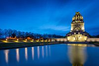 Het Monument voor de Slag om de Volkeren op een avond in de winter