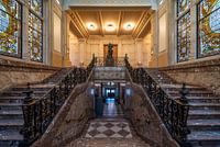 Glasramen, marmeren trappen, kleurrijke tegels: aan alles is gedacht om indruk te maken in het gemeentehuis van Schaarbeek, Brussel, België.