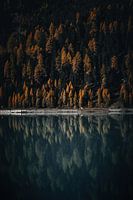 Koop de foto Moody herfstkleuren in de alpen. Bomen en bergmeer reflectie van Hidde Hageman op canvas, aluminium dibond, (ingelijste) fotoprint, behang en ArtFrame, op maat geprint in Fine-Art kwaliteit.