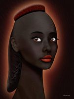 Dit werk is een variatie op een ander werk dat ik gemaakt heb. De mooie donkere huidskleur, de opvallende en sprekende ogen en het contrast met de achtergrond maken het tot een mooi geheel.