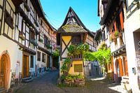 Vakwerkhuizen in de straten van het dorp Eguisheim in de Elzas, Frankrijk.