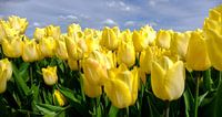 Mooi geel bollenveld tegen wolkjeslucht.