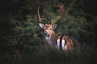 Dit grote damhert is klaar voor het gevecht. Het hert staat er scherp op en door de zachte achtergrond en zijn strakke blik naar de camera toe maakt het een schitterende plaat voor aan de muur.
