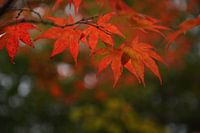 close up van sfeervolle tak met rode herfstbladeren bij Hollandse tuin in Clingendael, Den Haag. Zen momentje?