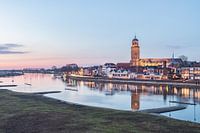 Ik was op een koude avond in Februari naar Deventer gereden om weer eens wat mooie foto's van deze prachtige Hanzestad aan de IJssel te maken. Deventer blijft toch wel een favoriete bestemming voor mij qua fotografie en vooral in de avond, als de lichtjes voor extra sfeer zorgen. Het aanblik op de stad geeft mij altijd weer een heerlijk gevoel. Deze foto met zicht op Deventer is genomen in het blauwe uurtje, vlak na zonsondergang, vanaf de Wilhelminabrug. Het was een bijna heldere avond met wat sluierbewolking aan de horizon, die door het laatste restje zonlicht mooi rood kleurde. De lichten in de stad waren al aan en de IJssel was die avond rustig waarddor de stad ook nog een beetje gespiegeld is in de IJssel. Zelf ben ik heel erg tevreden over deze foto en hoop dat hij bij u een mooi plekje aan de muur mag vinden, zodat u ook van dit mooie zicht op Deventer kunt genieten!