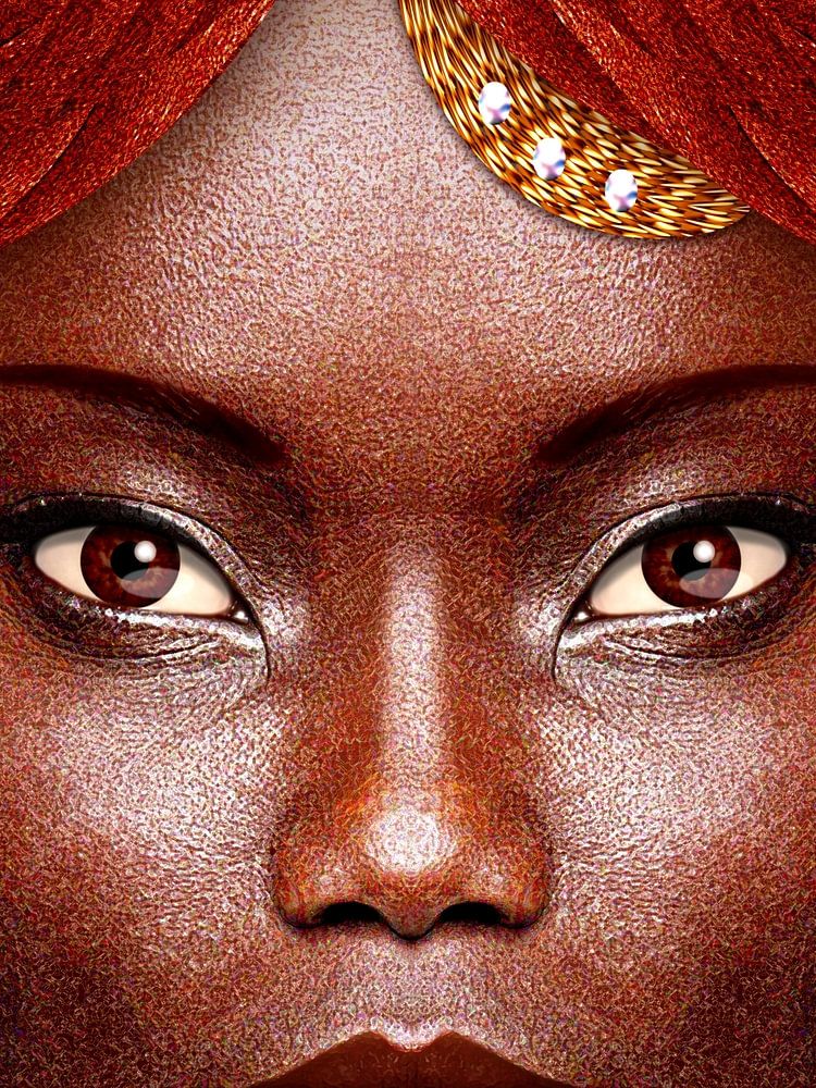 Deze Afrikaanse vrouw heeft bijzonder haar en mooie gouden sieraden. Goud met diamanten. Dit werk is vervaardigd met gebruikmaking van speciale toepassingen. Een mooi werk voor aan de muur.