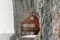 Koop de foto Mooie bergherberg Aescher-Wildkirchli in Ebenalp van Besa Art als print op canvas, aluminium dibond, (ingelijste) fotoprint, behang en ArtFrame. Voor jou op maat geprint in Fine-Art kwaliteit.