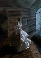 Is het een trouwjurk? Wacht ze op de bruidegom of twijfelt ze?