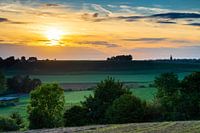 Mooie herfstavond met zonsondergang over het Jekerdal en de wijngaarden in Maastricht. Deze typische uitzichten zijn kenmerkend voor Zuid Limburg waarbij, je jezelf waant in het Frankrijk met de golvende heuvels, en de wijnvelden.