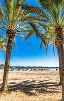 Mooie kust op het eiland Mallorca, strand Platja de Alcudia met palmbomen, Spanje Middellandse Zee, Mallorca, Balearen, Balearen, Middellandse Zee, Spanje