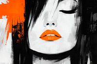 Een gepassioneerd portret dat speelt met krachtige zwarte en oranje tinten trekt onmiddellijk de aandacht. De zachte lippen en mysterieuze glimlach stralen een aura van elegantie en zelfvertrouwen uit. Dit kunstwerk is perfect voor een stijlvolle woonkamer of een creatief kantoor, waar het inspirerende energie verspreidt.