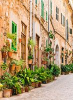 Mooie straat in het mediterrane dorp Valldemossa op Mallorca Spanje , Mallorca, Balearen, Balearen, Middellandse Zee, Spanje