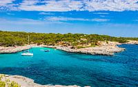Mooie strandbaai met boten aan de Middellandse Zeekust van Mallorca, Spanje Balearen, Cala Mondrago