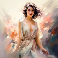 Schilderachtig beeld van een mooie vrouw in een lichte jurk.