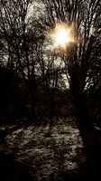 Een mooie winterdag in het Gorsebos in Purmerend. Voor de verandering was het eens een keer niet grijs en donker, maar juist fel zonnig. De laagstaande zon straalt fel door de kale takken van de bomen in het Gorsebos en trekt lange schaduwen op de grond.