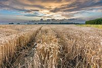 Zonsondergang met mooie lucht boven een tarweveld in de buurt van Goes.