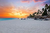 Mooie zonsondergang op Manchebo beach op Aruba in de Caribbische Zee