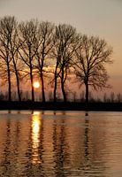 Mooie zonsondergang over de Nederrijn bij de pont in Elst