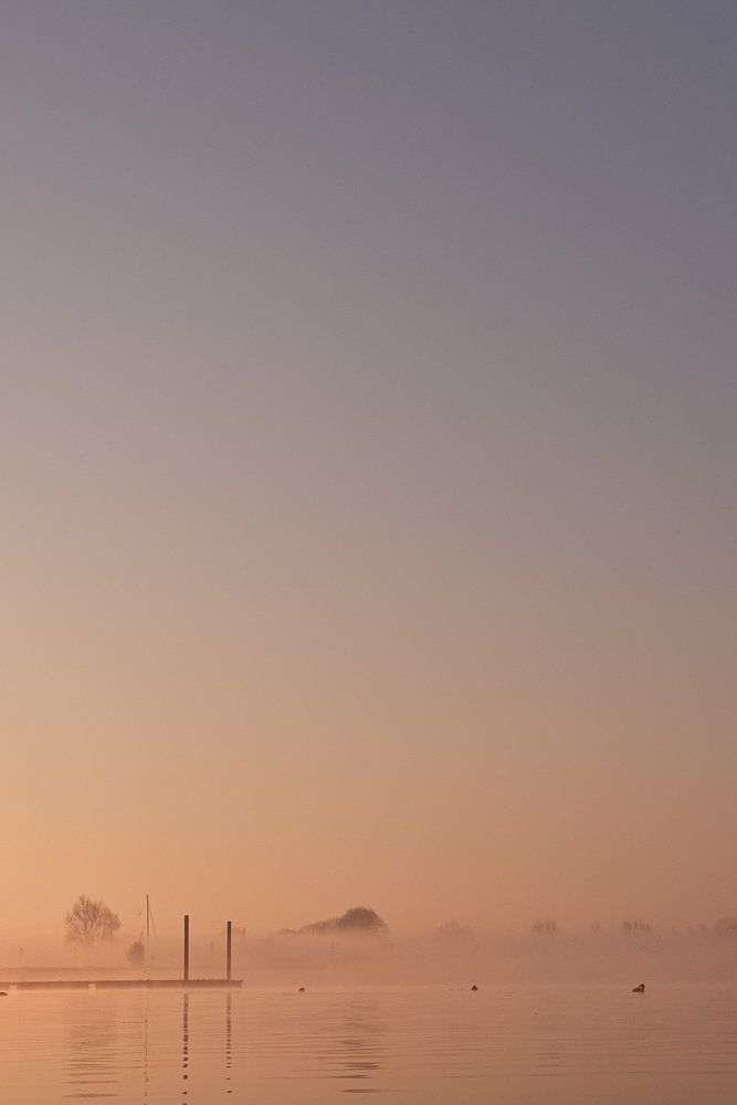 Een sereen beeld van water, pasteltinten en een fraaie zonsopkomst bij het Eiland van Maurik.