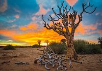 Koop dit landschapskunstwerk Mooie zonsopkomst boven de Kalahari woestijn, Namibië van Rietje Bulthuis op canvas, aluminium dibond, (ingelijste) fotoprint, behang en ArtFrame, op maat geprint in Fine-Art kwaliteit.