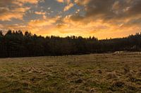 Mooie zonsopkomst in natuurgebied Kwintelooijen in Nederland. De verschillende kleuren in de lucht in combinatie met de wolken zorgen voor een mooi beeld.