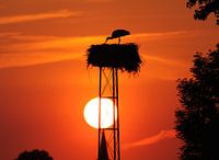 Ooievaar in het prachtige avondlicht in Nederhemert