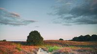 De Mookerheide, badend in het avondlicht van de laagstaande zon. In augustus begint de bloei van de heide en kleurt deze in prachtige tinten paars. Deze tint wordt nog verterkt door het gouden licht in het uurtje voor zonsondergang. De Mookerheide of Mookerhei is een bos- en heidegebied ten oosten van Mook in de Nederlandse provincie Limburg op een hoogte van ca. 50 meter, ten zuiden van Nijmegen. Op de Mookerheide vond in 1574 de Slag op de Mookerheide plaats. Lodewijk van Nassau en Hendrik van Nassau, twee jongere broers van Willem van Oranje, vochten hier tijdens de Tachtigjarige Oorlog tegen de Spanjaarden. Het bosgebied tussen Nijmegen en Mook was eerder een grote heide, die in zijn geheel de Mookerheide werd genoemd. Ter hoogte van Molenhoek is de Heumense Schans nog terug te zien in het landschap. Natuurmonumenten bezit in de Mookerheide een gebied van 235 ha.