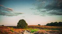 De Mookerheide, badend in het avondlicht van de laagstaande zon. In augustus begint de bloei van de heide en kleurt deze in prachtige tinten paars. Deze tint wordt nog verterkt door het gouden licht in het uurtje voor zonsondergang. De Mookerheide of Mookerhei is een bos- en heidegebied ten oosten van Mook in de Nederlandse provincie Limburg op een hoogte van ca. 50 meter, ten zuiden van Nijmegen. Op de Mookerheide vond in 1574 de Slag op de Mookerheide plaats. Lodewijk van Nassau en Hendrik van Nassau, twee jongere broers van Willem van Oranje, vochten hier tijdens de Tachtigjarige Oorlog tegen de Spanjaarden. Het bosgebied tussen Nijmegen en Mook was eerder een grote heide, die in zijn geheel de Mookerheide werd genoemd. Ter hoogte van Molenhoek is de Heumense Schans nog terug te zien in het landschap. Natuurmonumenten bezit in de Mookerheide een gebied van 235 ha.