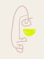 Minimalistisch portret, betaalde uit 1 vloeiende lijn. Zachte roze tint met Neon geel accent.