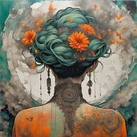 Schilderij Flower Portrait 6.42 - een schilderij uit een reeks schilderijen over dromen, kleuren, vlinders en bloemen.