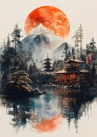 Een etherische scène van torenhoge bergen onder een volle maan, die de harmonie van de natuur laat zien.