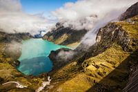 Een van de twee meren van de Mooserboden Stausee in de Oostenrijkse Alpen in de buurt van Kaprun. Turbines zorgen voor de elektriciteitsopwekking door water van het eene in het andere meer te laten lopen. In tijden van overschot wordt er water naar boven gepompt (Pumpspeicher).