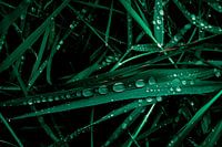 Er vormen zich waterdruppels op het gras. De stengels zinken op de grond onder het gewicht.