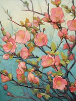 Details: kweepeerbloesem, bloemenschilderij, ochtenddauw, art nouveau,…