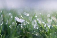 Op een frisse ochtend liep ik in het park. Het gras was bezaaid met dauwdruppels. Tussen het gras stond een eenzaam madeliefje. Met tegenlicht kon ik deze flonkerende foto maken. Wat een spektakel!