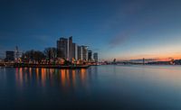 De skyline van Rotterdam ontwaakt ten hoogte van de maasboulevard.