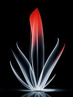 Abstract A.I. werk van vlammen in wit met rode details op een zwarte achtergrond. Moderne kunst.