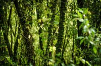 Een mooie scherptediepte natuurfoto van mossige boomstammen in de Biesbosch.