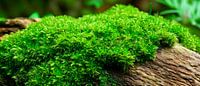 Een levendig tapijt van weelderig, groen mos verspreidt zich harmonieus over een rustieke boomstam en brengt een stukje natuur in huis. Dit frisse, rustgevende display is bijzonder effectief in een woonkamer, waar het een ontspannen sfeer creëert en perfect combineert met natuurlijke materialen. Ideaal voor natuurliefhebbers!