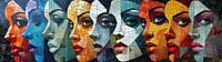 Details: mozaïek, gezichten, abstract, modern, portret, kleurrijk, ogen, vrouw, kunst, creatief