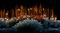 Langs de Manpadslaan in Heemstede ligt een paardenweide omheind met een oud houten hek waarop verschillende mossen groeien. In de ochtend na de tweede nachtvorst van deze winter zijn deze mossen bedekt met een laagje rijp. De ijskristallen zie je op het voorste moskussentje. De rijp op de sporenkapsels van het achterste mos ? op de paal waaraan het hekwerk bevestigd is ? begint al te ontdooien. De druppels vormen mooie bokeh-cirkeltjes in het tegenlicht van de nog laagstaande zon