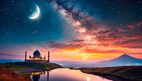 Moskee met sterrenhemel en maan