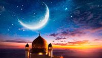 Moskee met sterrenhemel en maan